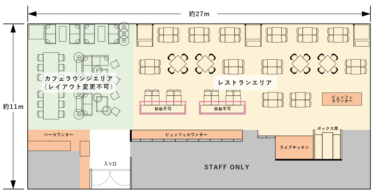 ※パーティーでのご利用の際は、カフェラウンジエリア、レストランエリア共に貸切と致します。